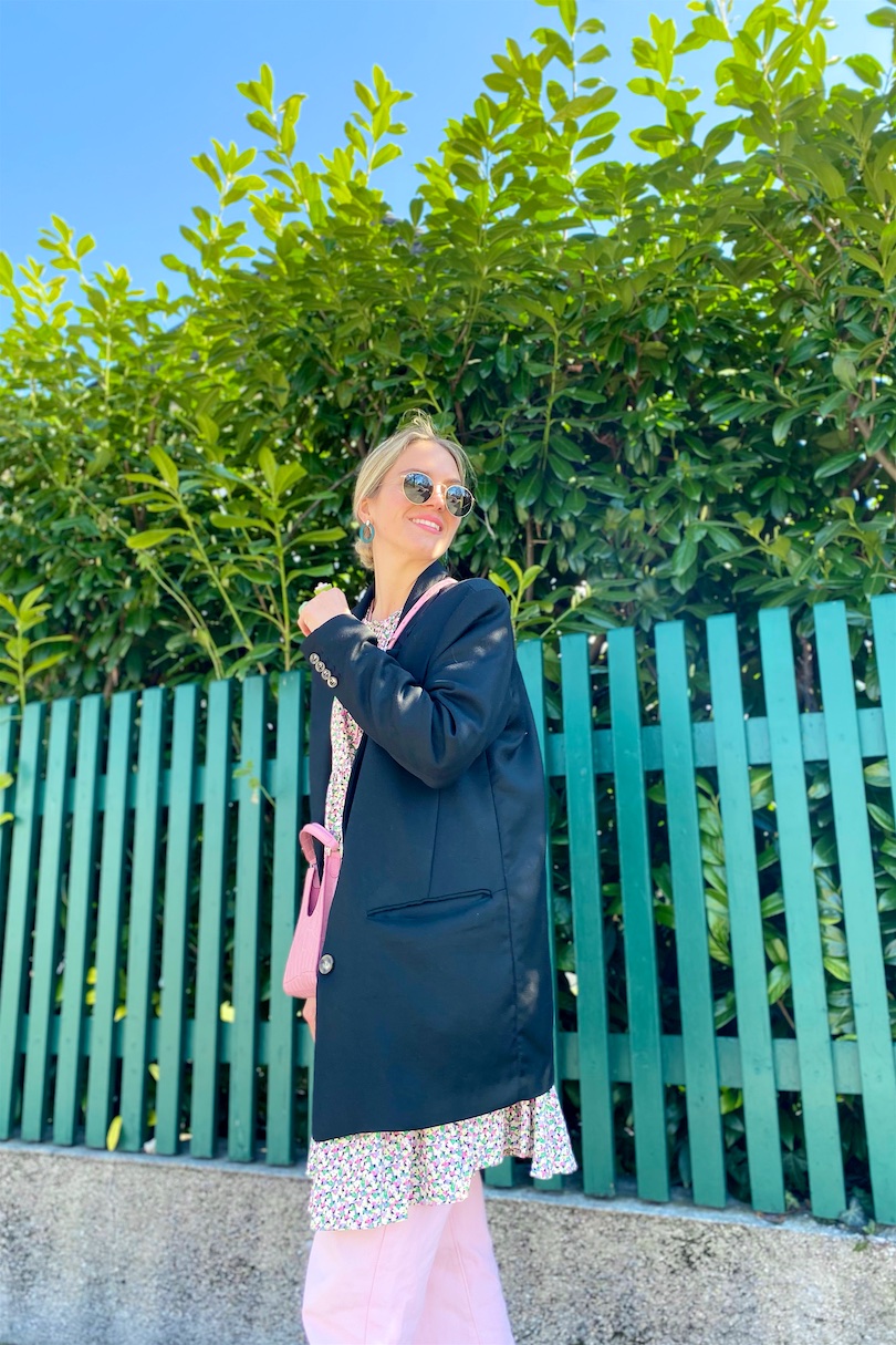 One of my essential fashion tricks during spring is wearing a dress together with pants. Obviously you have to be careful by picking shapes and lengths. Always make sure you keep the right proportions. For example my dress and blazer are definitely oversized and big. In this case you wouldn’t want to go with wide leg pants, but something more slim.