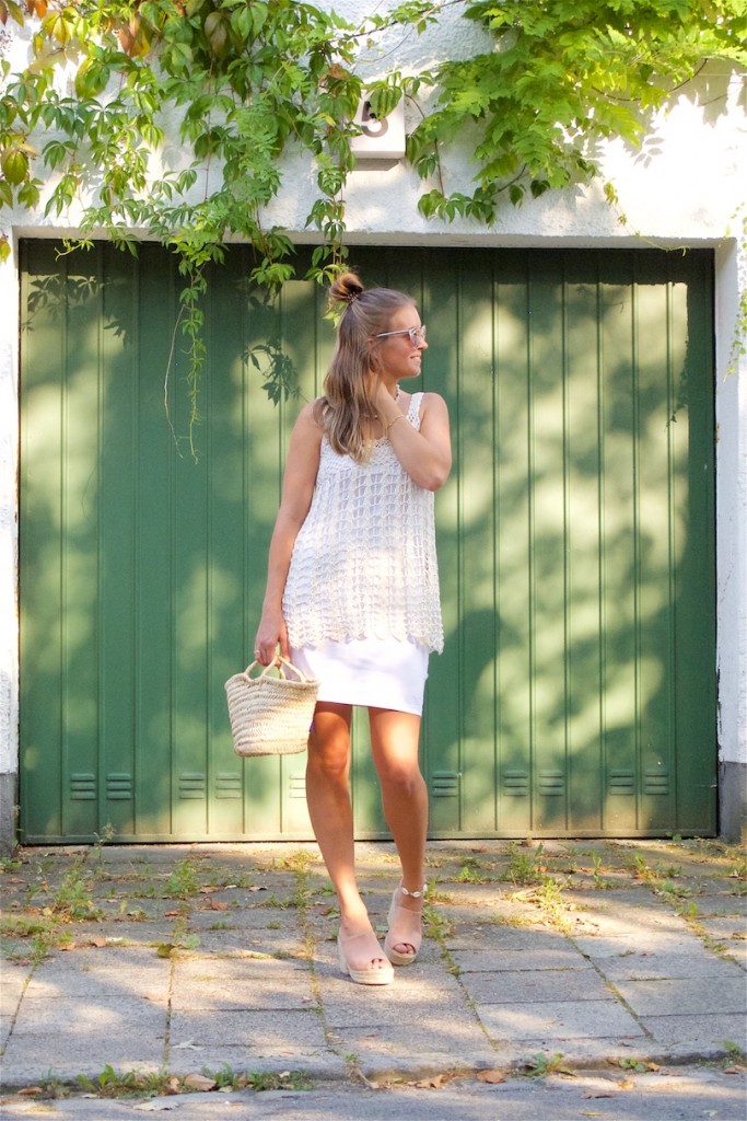 Since we are moving in a few weeks, I’m constantly clearing out my closet (yes, I hate doing it and I have sooo much stuff 😉 ). But the good thing is, that I rediscover some old pieces, that I totally forgot about (ooopsie…). Anyways, this crochet top was one of these pieces and I never thought about wearing it over a simple dress. I really love that it appears to look like a crochet dress that way.
