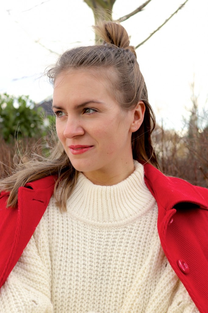 This look is dedicated to holiday season whites. Okay, let’s say off-whites. Combining different shades of white looks so elegant and chic. But since it’s holiday season I had to add a tiny little bit of red otherwise it just wouldn’t be right! 😉 My favorite piece of this outfit is my new snake print bag though. I really love the shape of it and its cool strap. Oh, and by the way – this chunky sweater is sooooo cozy and warm – just perfect for the holidays!
